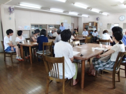 吉田小学校の体育館を借りて、レクリエーションをしたり、おやつを振舞っていただいたりしました。