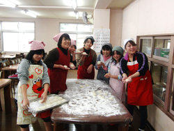 吉田小学校の体育館を借りて、レクリエーションをしたり、おやつを振舞っていただいたりしました。